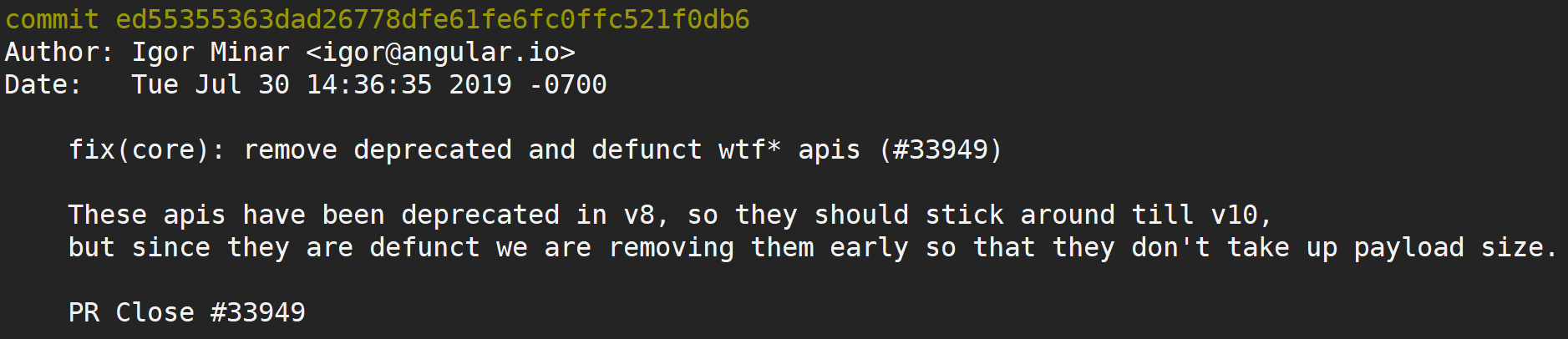 Breaks foo.bar api, foo.baz should be used instead接下来,我们详细看看 Angular 规范中 Commit Message 的三个部分。