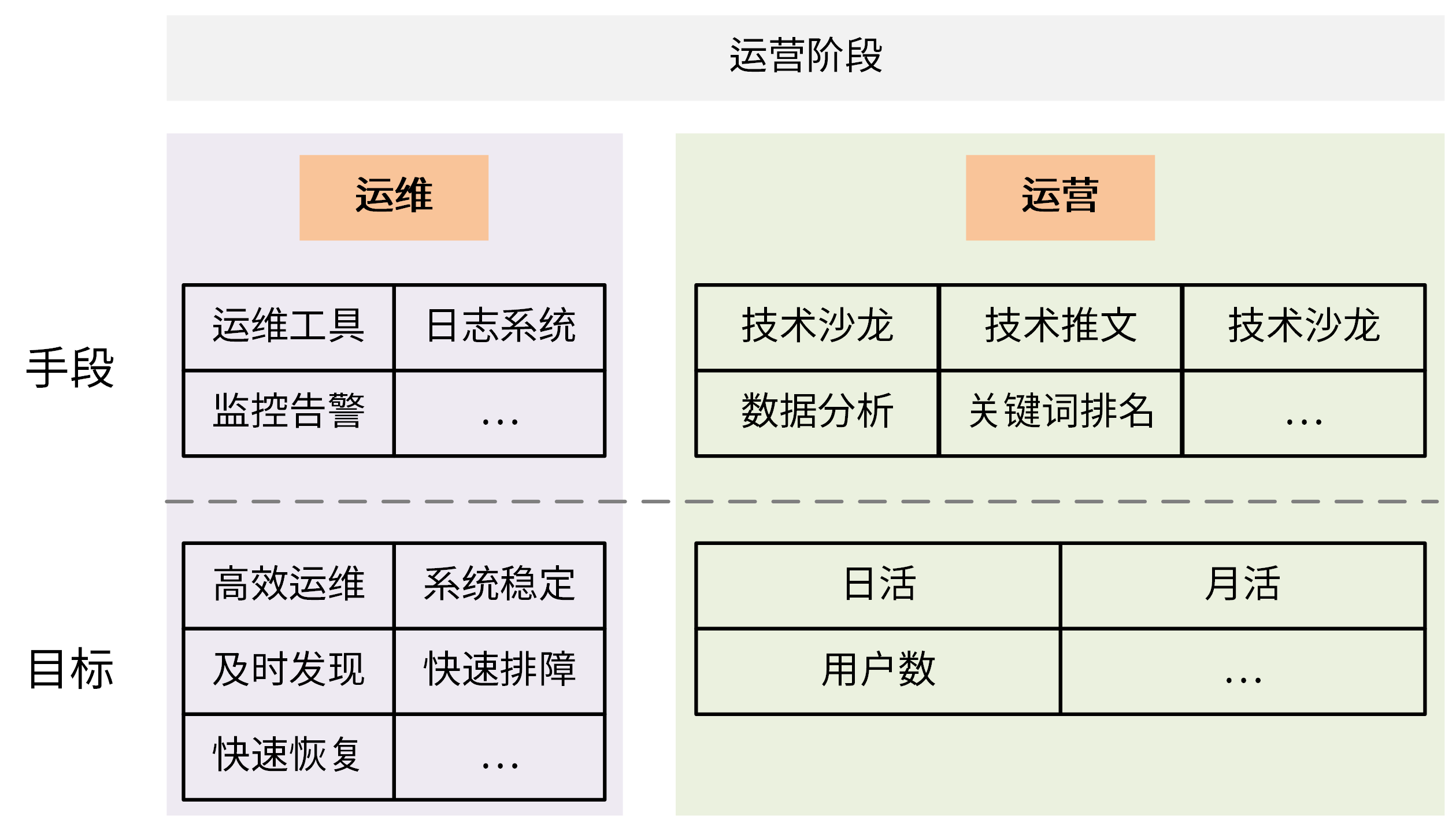 研发流程的最后一个阶段是运营阶段,该阶段主要分为产品运营和运维两个部分。