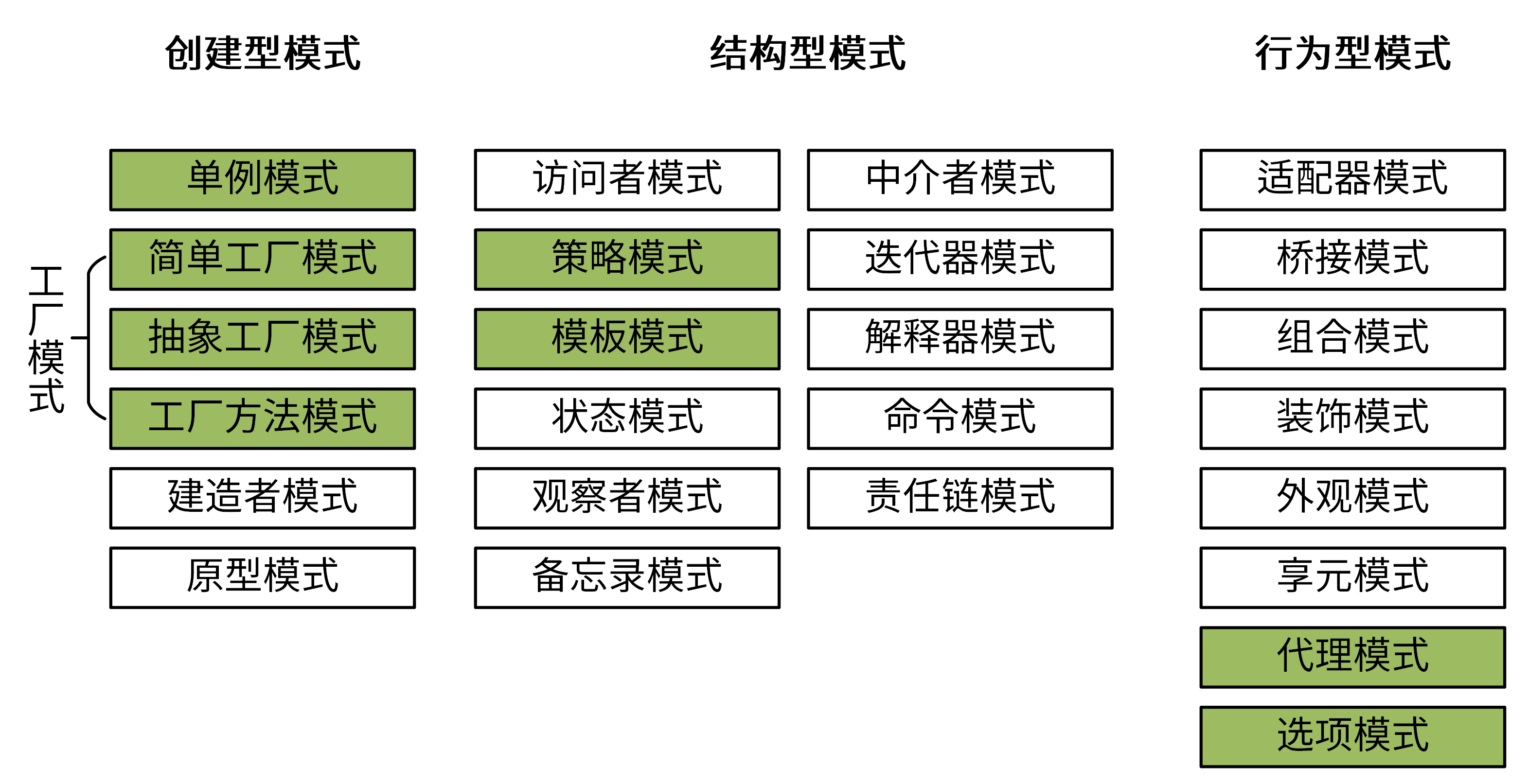 设计模式,是业界沉淀下来的针对特定场景的最佳解决方案。在软件领域,GoF首次系统化提出了3大类设计模式:创建型模式、结构型模式、行为型模式。
