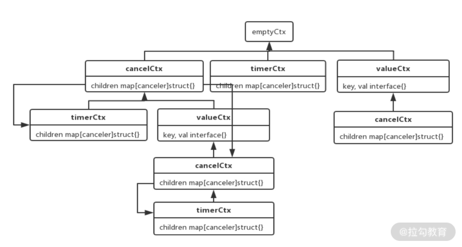 有了根节点 Context 后,这颗 Context 树要怎么生成呢?需要使用 Go 语言提供的四个函数。